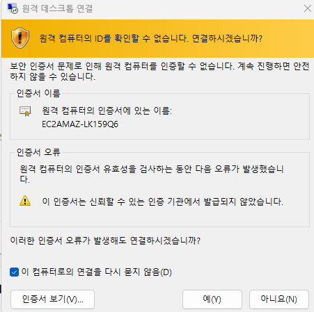 저렇게 상태 검사가 확인되면 연결 버튼을 누른다.