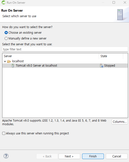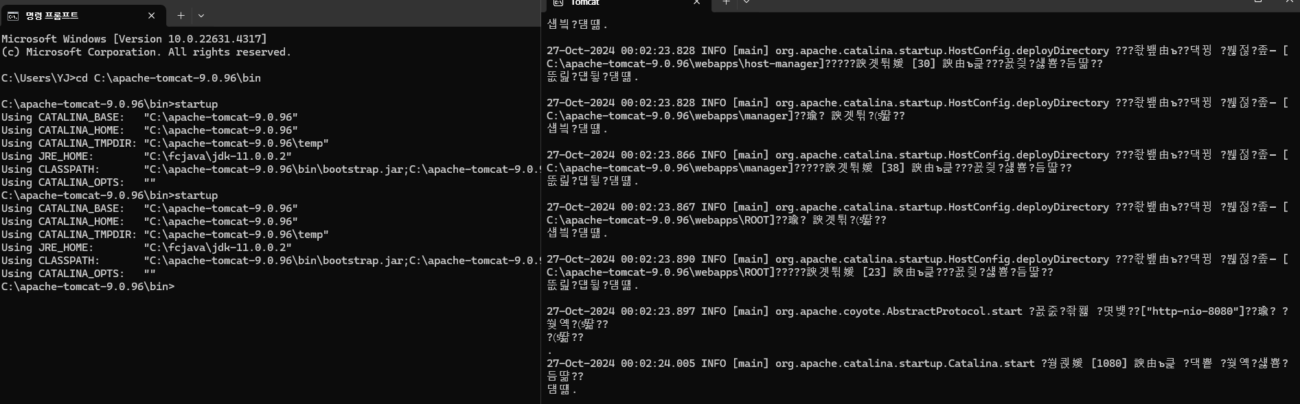 톰캣의 bin의 startup클릭