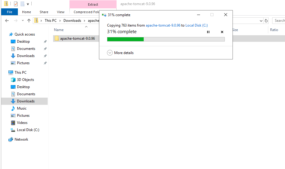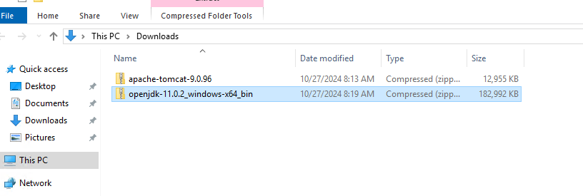 톰캣도 jdk와 같이 c드라이브로 옮겨주면 자동으로 압축이 풀린다.