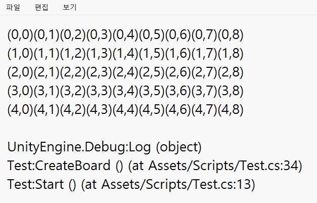 Debug.LogFormat("열의 개수 : {0} ", board.GetLength(1));
