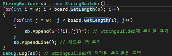 Debug.Log(sb); // StringBuilder에 저장된 문자열을 출력
