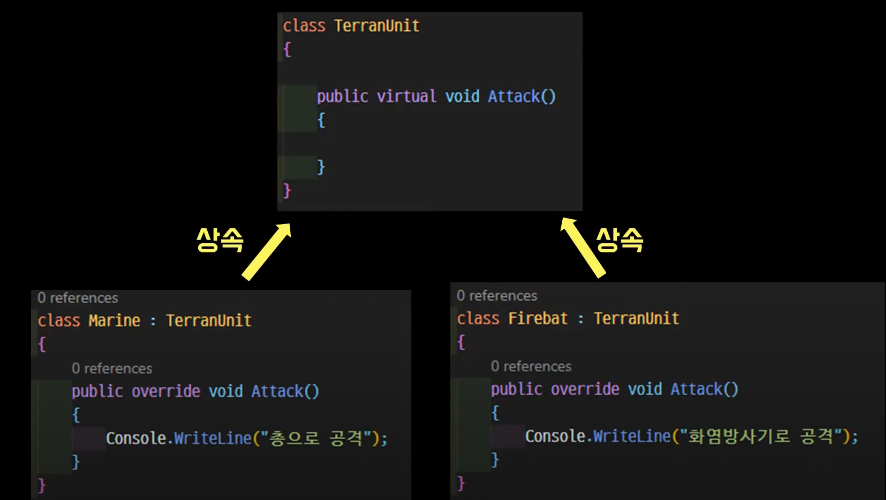 Console.WriteLine("TerranUnit 클래스의 생성자");