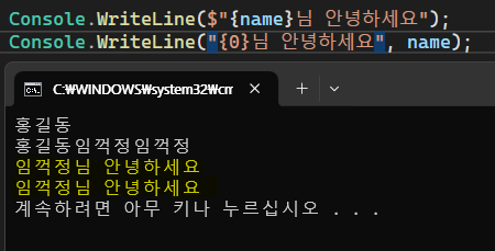 Console.WriteLine("{0}이(가) {1}을 장전을 합니다", this.name, weaponName); ;