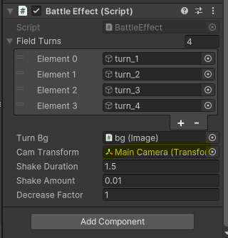 Decrease Factor : 흘러가는 시간을 조정(Shake Duration 수치 조정)