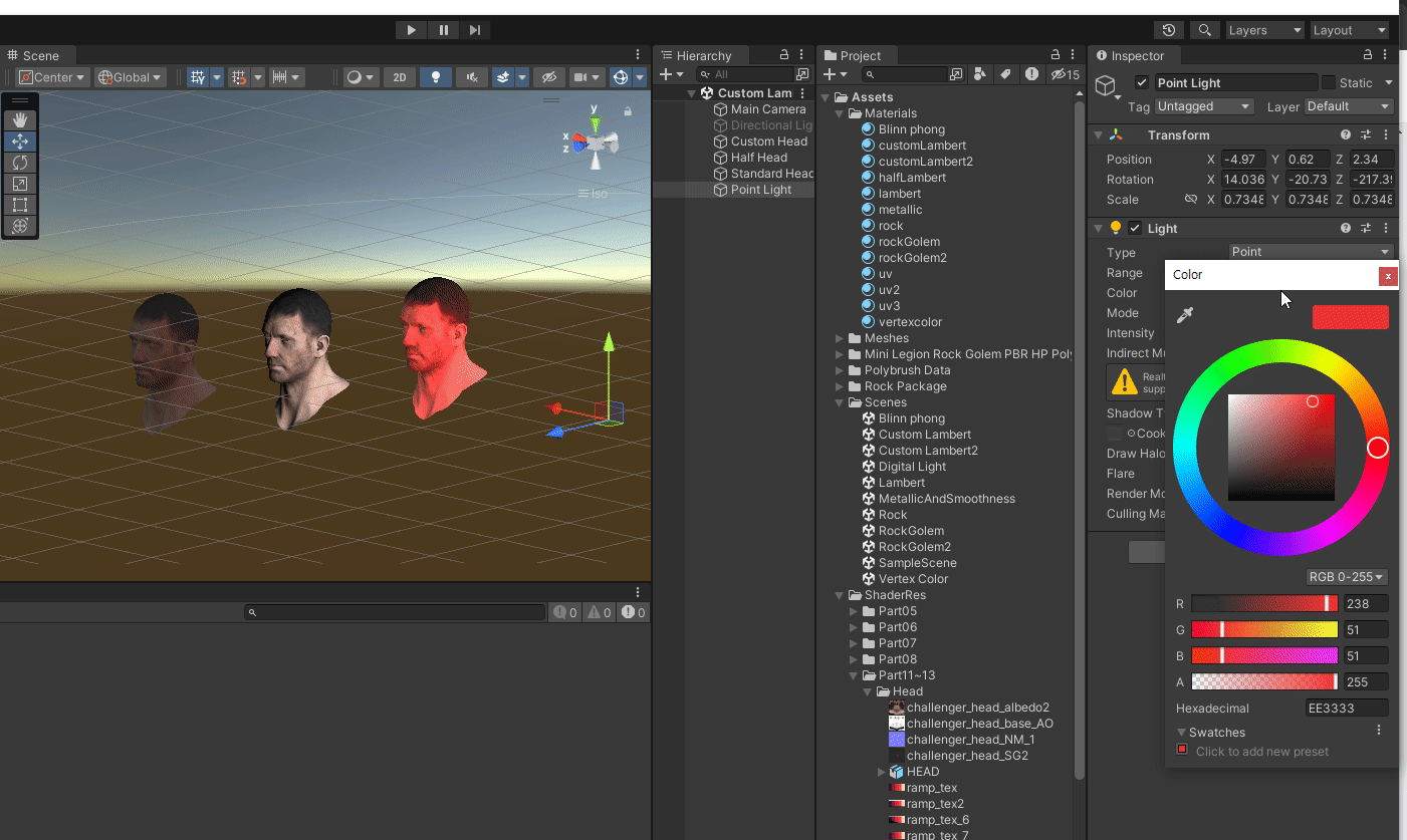차례대로 Standard, CustomLambert, HalfLambert