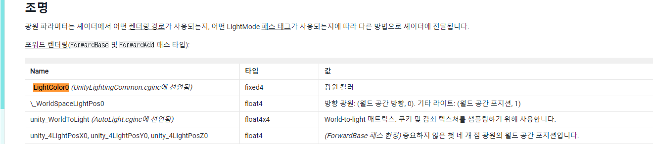 https://docs.unity3d.com/kr/2021.3/Manual/SL-UnityShaderVariables.html