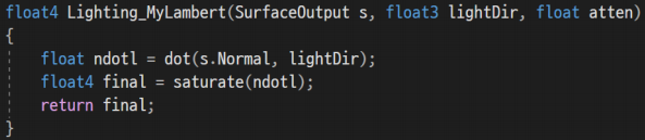 3. float4 Lighting_MyLambert(SurfaceOutput s, float3 lightDir, float atten)
