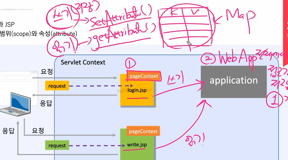 request 저장소는 첫번째 jsp에서받지 않고 두번째로 받을 수 있다.
