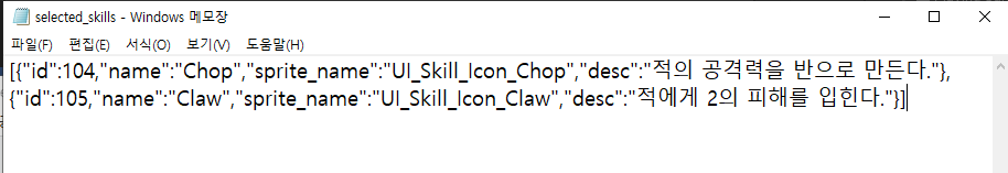 // 선택된 스킬의 정보를 직렬화하여 로컬에 저장