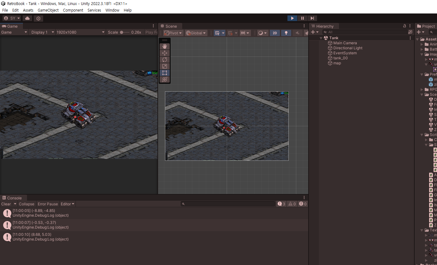 코드를 수정하기 전에도 있었던 문제 같은데 위치에 도달하면 Tank가 사라지는 것을 발견