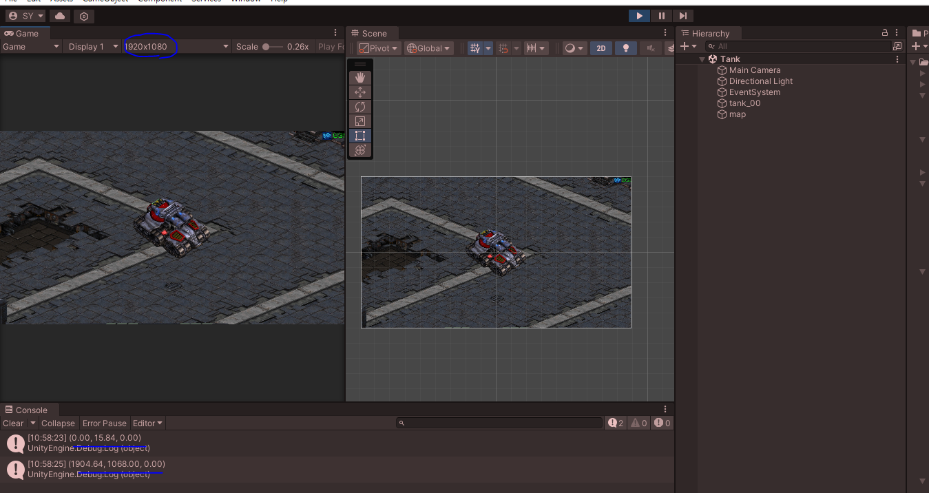 Debug.Log(mousePosScreen); // 캔버스의 크기는 좌측하단 0*0 부터 1920 * 1080이지만 추가로 월드좌표가찍힘
