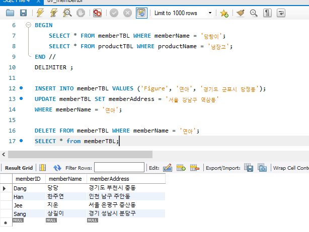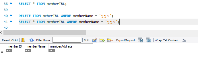 SELECT * FROM memberTBL WHERE memberName = '당탕이';