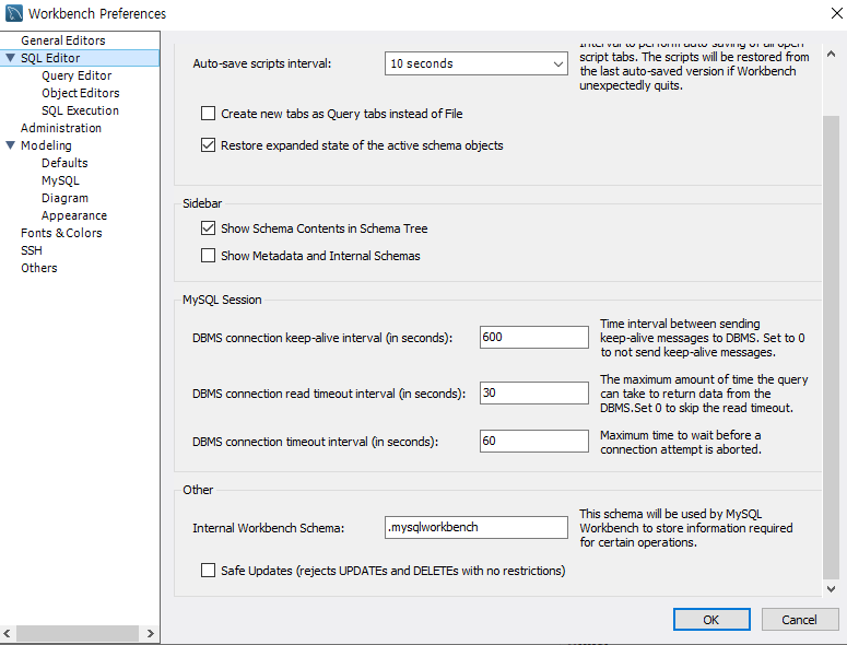 가끔 업데이트할때 오류가 나는 이유는 맨 아래 세이프 모드가 체크 되어있기 때문에