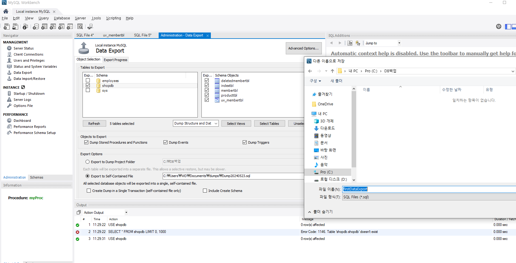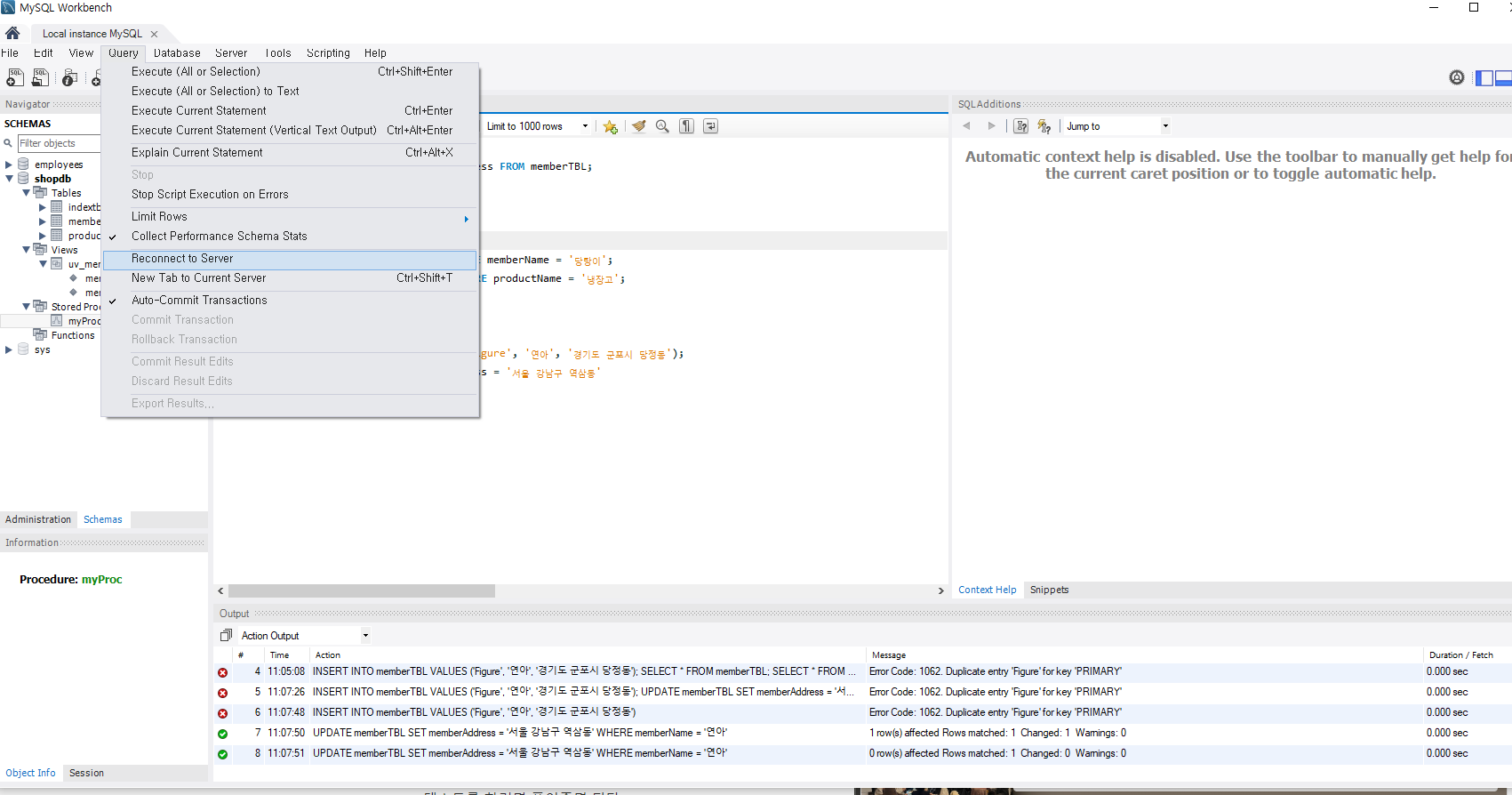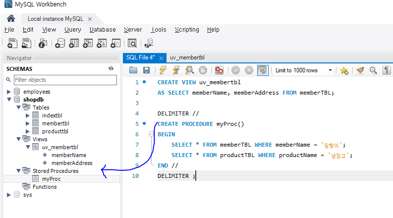 그러면 이렇게 프로시져가 만들어짐을 확인할 수 있다.