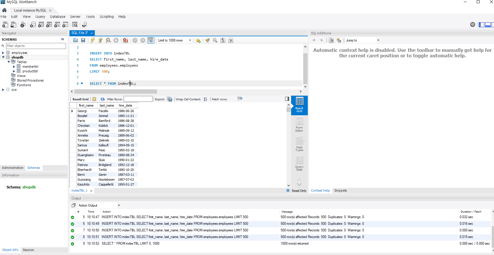 CREATE TABLE indexTBL (first_name varchar(14), last_name varchar(16), hire_date date);