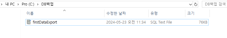 C에 DB백업이라는 폴더 생성