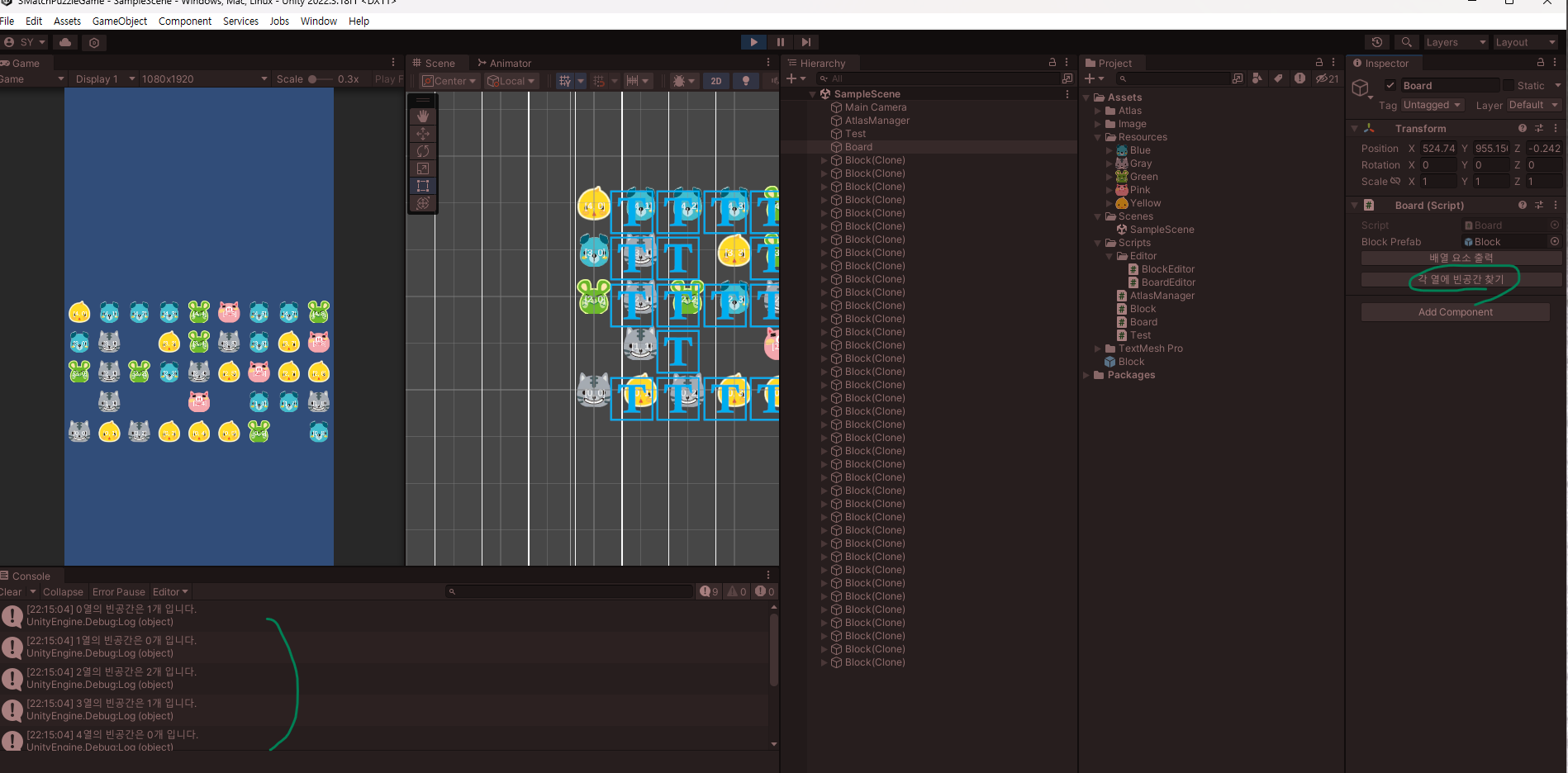 if(GUILayout.Button("각 열에 빈공간 찾기"))