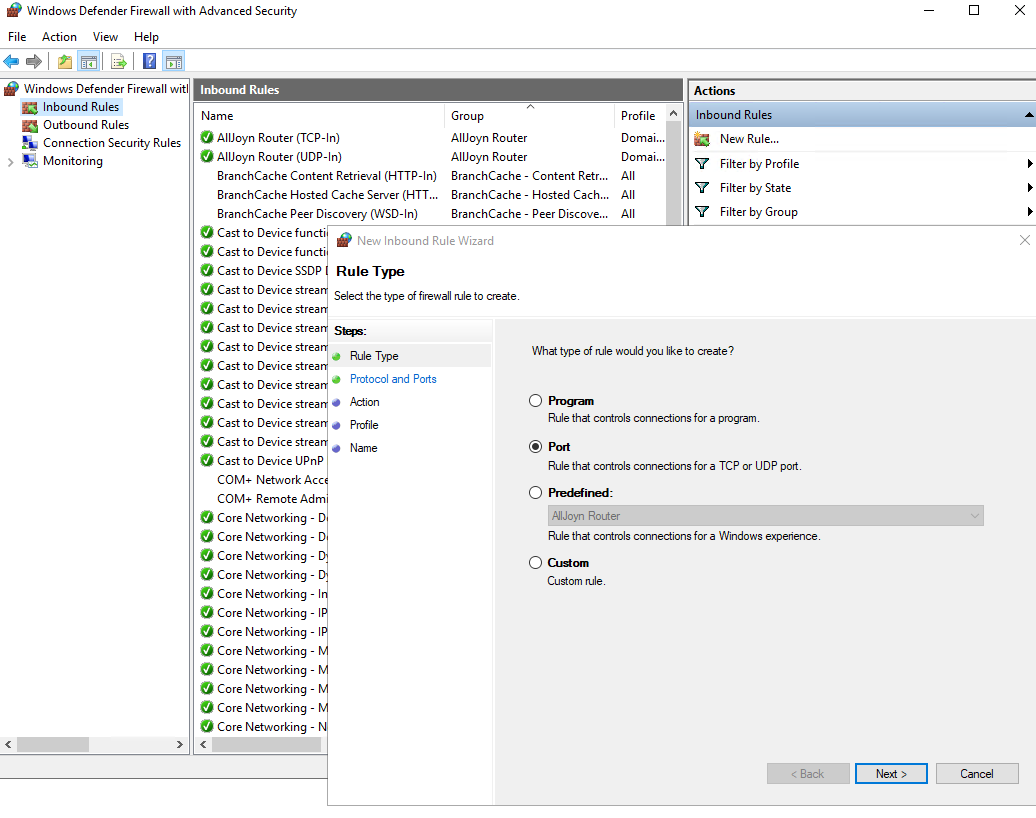 이제 가상 컴퓨터에 직접 접속하기 위해 방화벽설정에서
