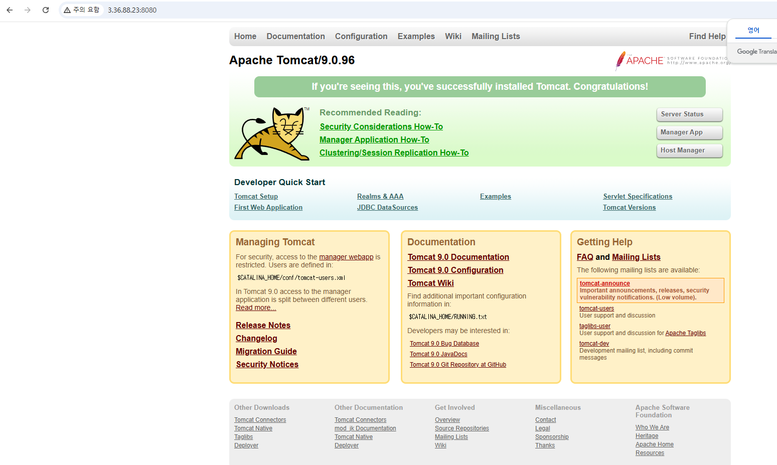 톰캣도 잘 실행이 되었는지 확인하기 위해 브라우저를 열고