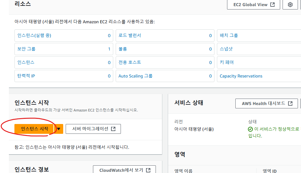 ec2의 대시보드에 들어가서 인스턴스(실행 중) 클릭