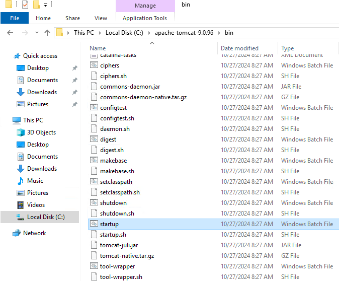 톰캣도 jdk와 같이 c드라이브로 옮겨주면 자동으로 압축이 풀린다.