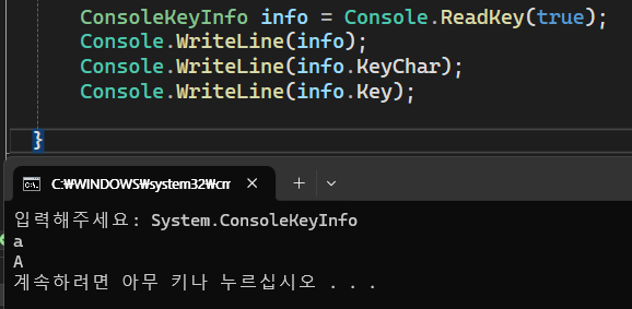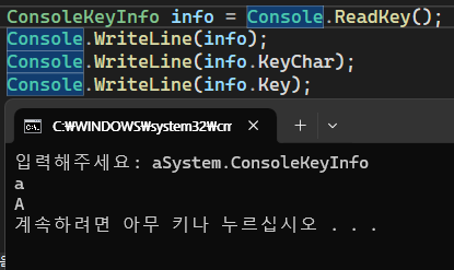 이제 a키를 입력해도 눌렀던 키가 바로 나오지 않는다.