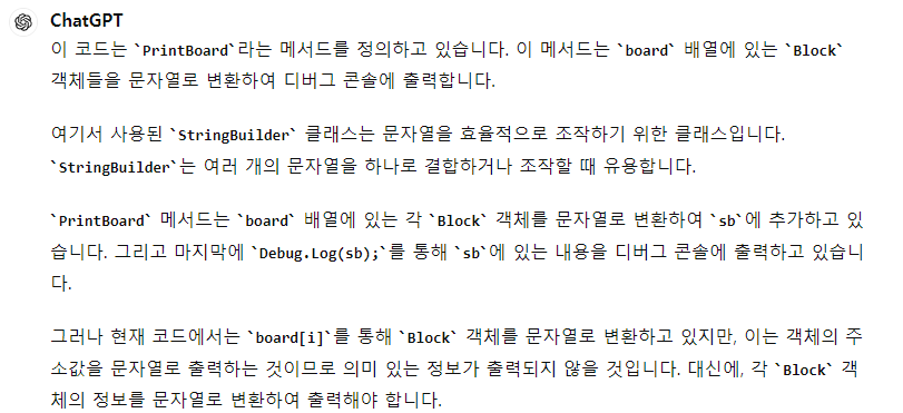Debug.Log(sb); // StringBuilder에 저장된 문자열을 출력